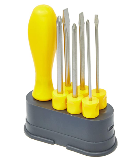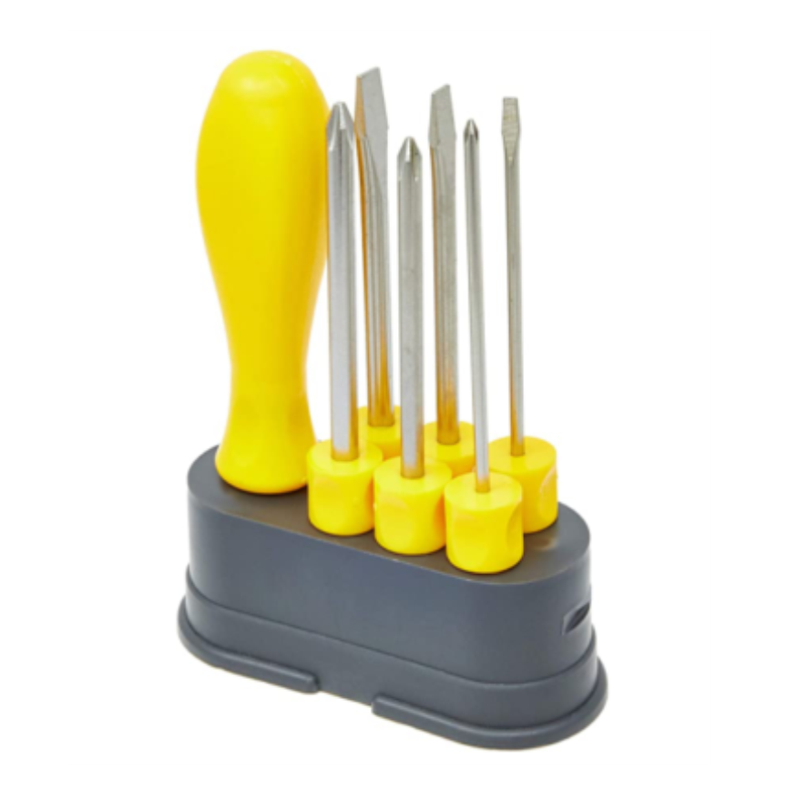 Jogo de Chaves de Fenda com Pontas Intercambiáveis, Conjunto de 6 Peças, Amarelo