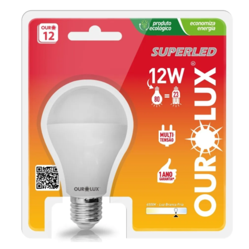 Lampada Led 12w E27 Ourolux Luz Branca Fria 6500k Superled